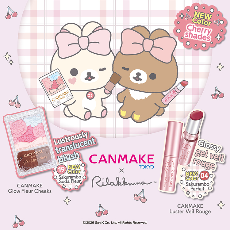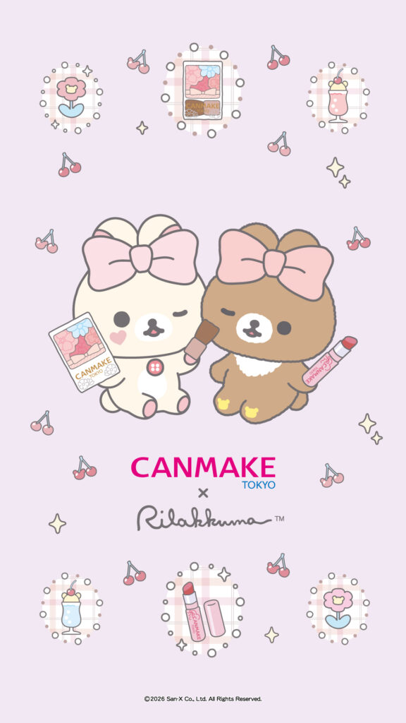 “CANMAKE×Rilakkuma”A cute, glossy cherry shades that brightens up your cheeks and lips.We’ll also give you original wallpaper as a gift!
