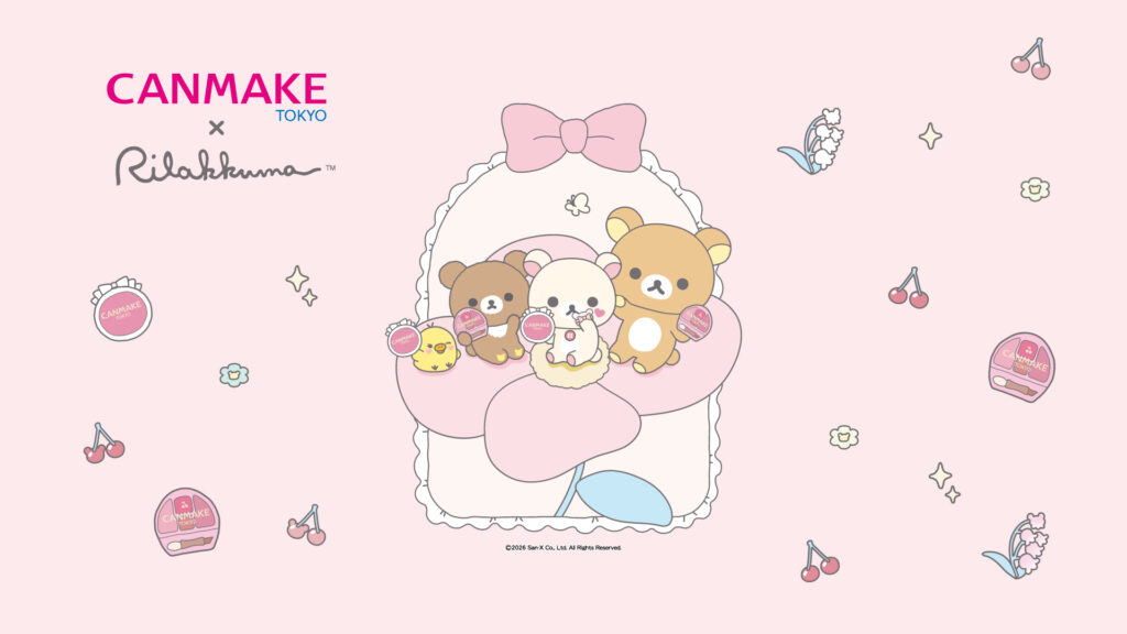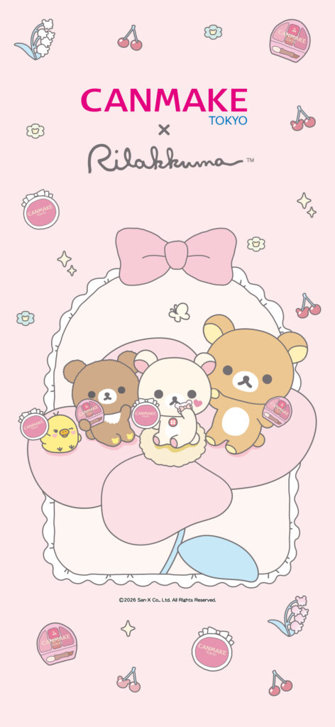 “CANMAKE×Rilakkuma”Cherry shades creates plump under eye area and soft cheeks♡We’ll also give you original wallpaper as a gift!