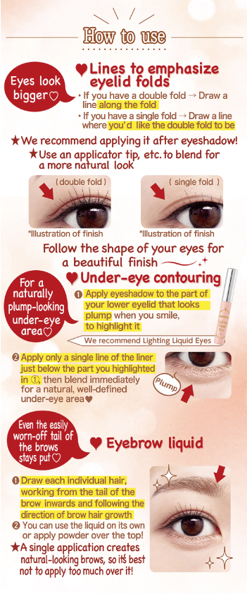 ● Eyelid fold emphasis / under-eye contouring: You'll achieve the best results by choosing according to your eyeshadow color and finish preferences.