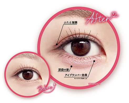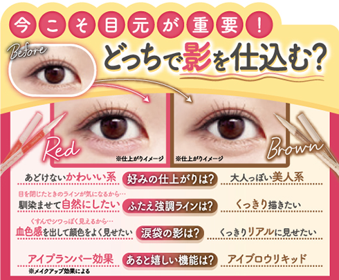まるで目元にルージュを塗ったかのように血色感を与え、かわいい印象に仕上がります。