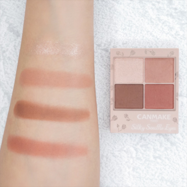 透け感のある柔らかい仕上がりになるマット3色と、透け発色の繊細ラメ1色のパレットシャドウ♡