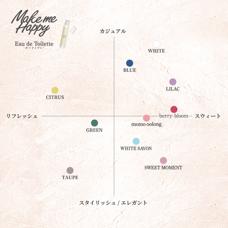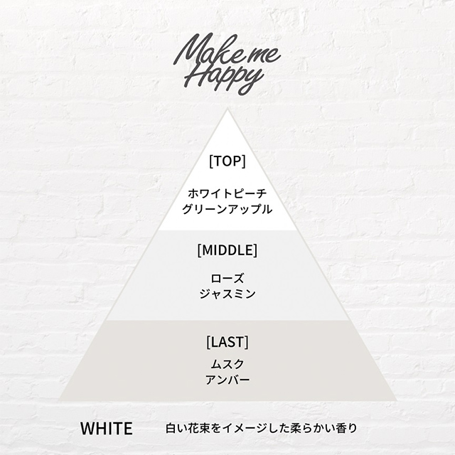 白い花束をイメージした柔らかい香り ホワイトピーチ、グリーンアップル/ローズ、ジャスミン/ムスク、アンバー