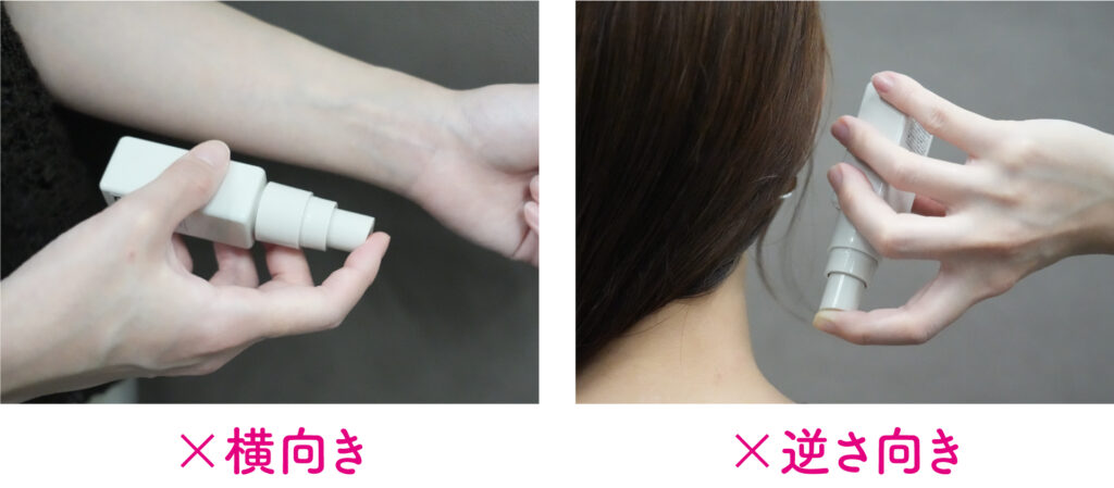 液漏れの原因となりますので、 横向きもしくは逆さ向きでのご使用はおやめください。