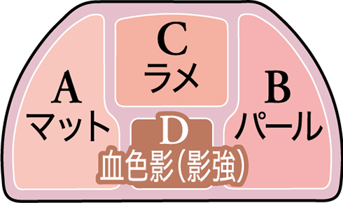 涙袋の影用の「血色影カラー」は、影寄りの色なのに血色感もあって目元が暗くならない