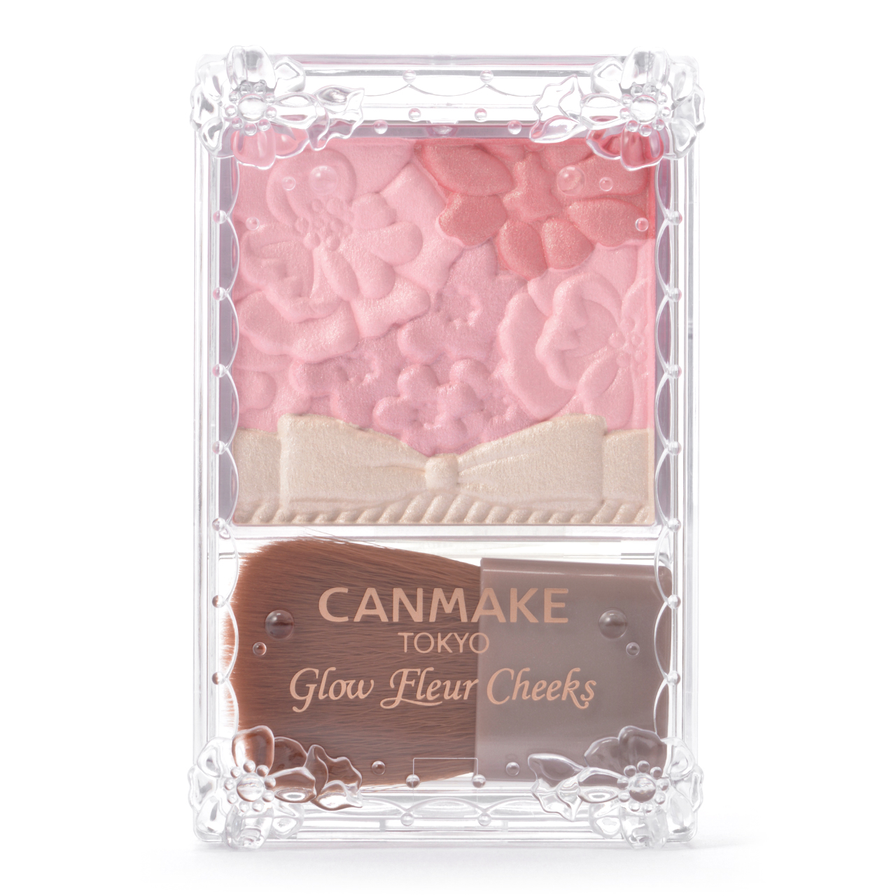 チークの部分をブラシで2~3回、円を描くようにくるくると混ぜ、最後の仕上げにツヤを出したい部分(頬の高い部分など)にグロウパウダーをONします。