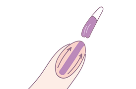 ベースコートを爪の先端・表面に薄く塗ります。(シアーな発色のネイルには透明タイプを。)