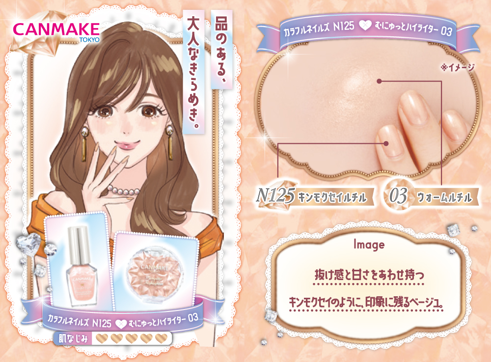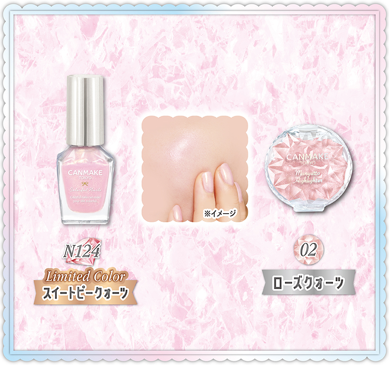 指先と頬をおそろいのカラーでリンクさせて、きらめきメイクを楽しもう💞