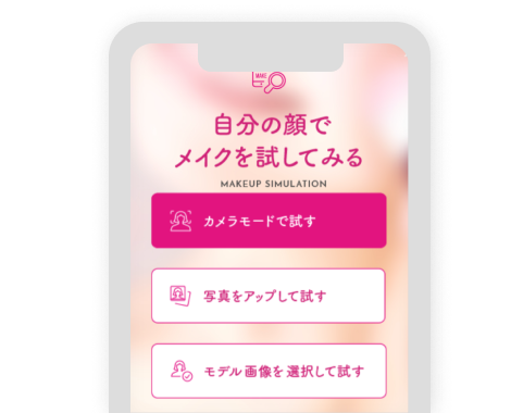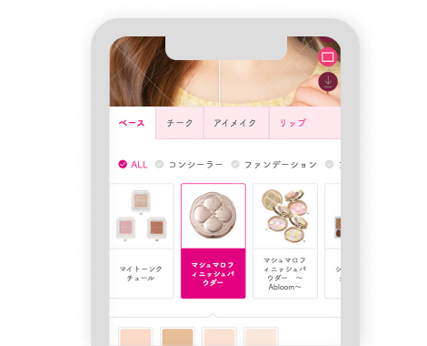 3D AR(拡張現実)およびAI技術を応用したメイクアプリで限りなく自然なバーチャルメイク体験をお楽しみいただけます。店頭に並んでいる商品をカンタンにお手元の端末でバーチャルトライが可能。実物商品と限りなく近い質感を体感いただけます。